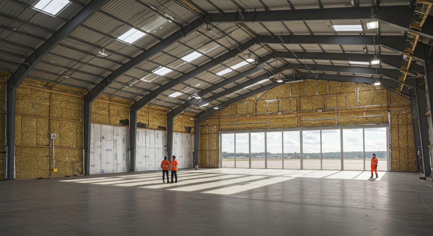 Одним из основных способов повышения энергоэффективности ангара является качественная теплоизоляция стен, кровли и пола. Для этого используют сэндвич-панели с высокоэффективным утеплителем, минеральную вату, пенополиуретан и композитные материалы. Каждый материал обладает своими преимуществами: минеральная вата обеспечивает пожарную безопасность и паропроницаемость, пенополиуретан минимизирует теплопотери за счет плотной структуры, а сэндвич-панели позволяют быстро монтировать конструкцию и обеспечить равномерную изоляцию всей поверхности.