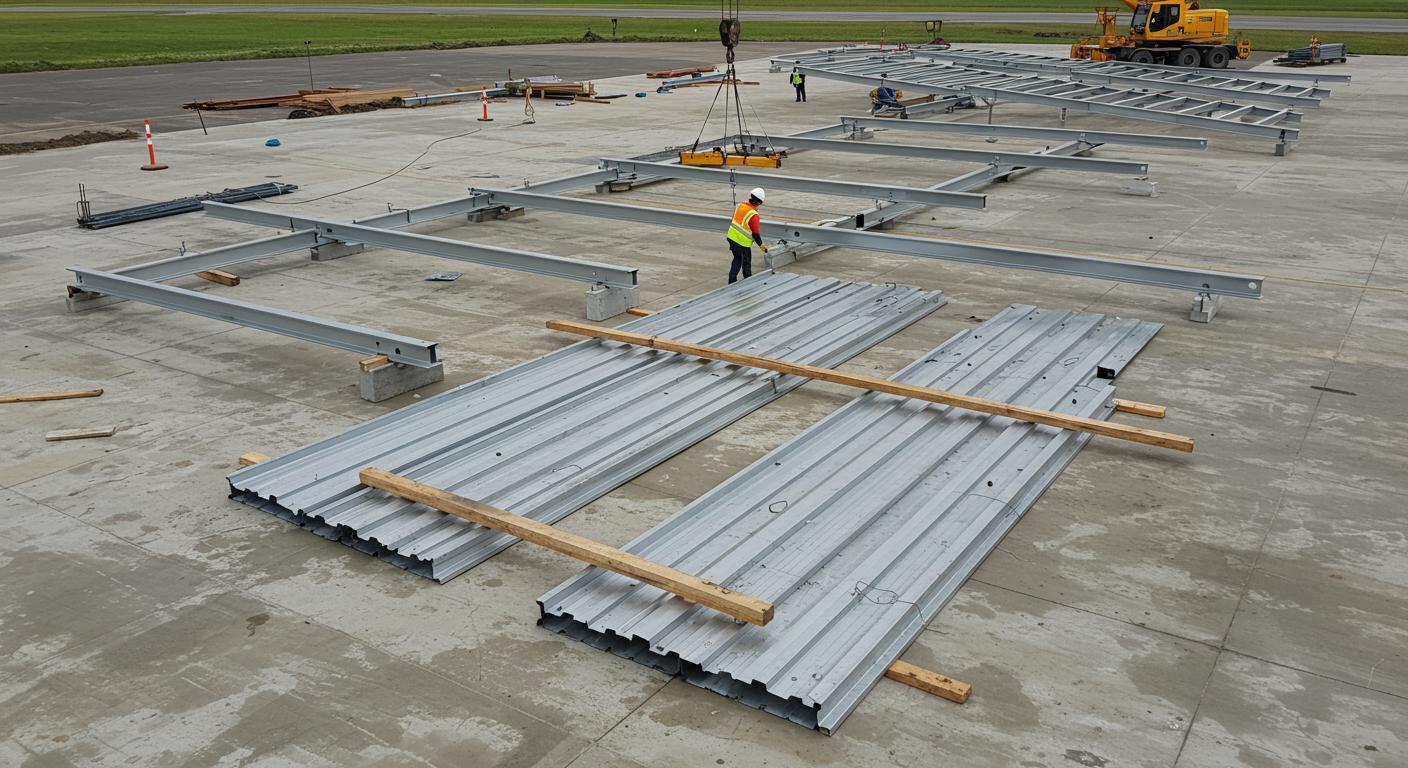 Этапы монтажа ангаров на бетонных плитах