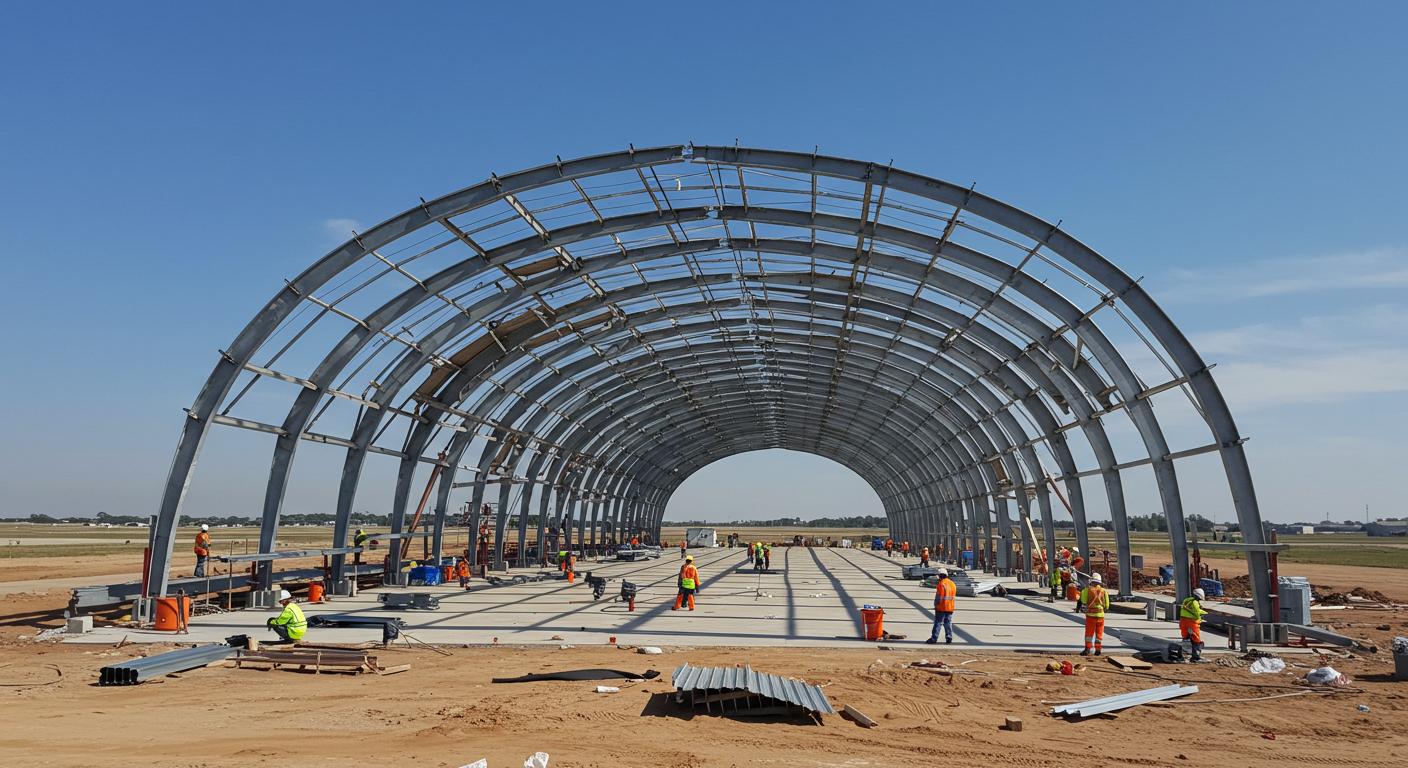 Технология сборки включает использование секционных арок, которые соединяются между собой, формируя прочную и гибкую конструкцию. Такая система позволяет быстро адаптировать размеры ангара под конкретные нужды бизнеса, а также легко увеличивать или уменьшать площадь сооружения без серьезных инженерных вмешательств.